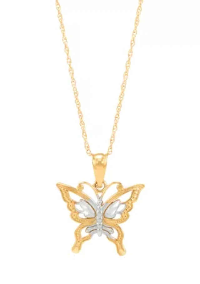 Butterfly Pendant Necklace with 18" Rope Chain in 10K Yellow Gold