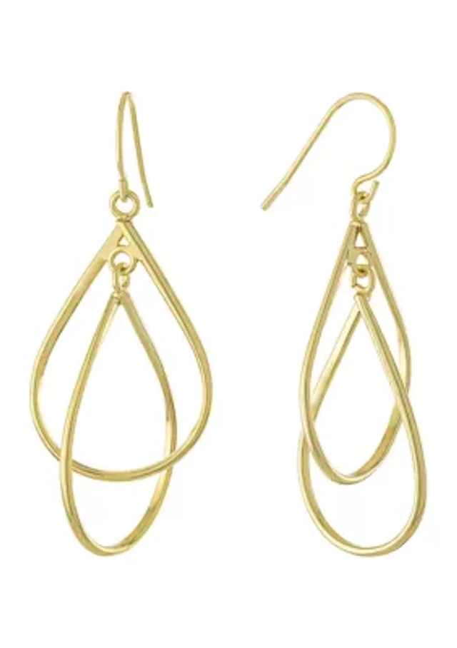Gold Over Stainless Steel Crystal Faceted Teardrop Half Hoop Earrings