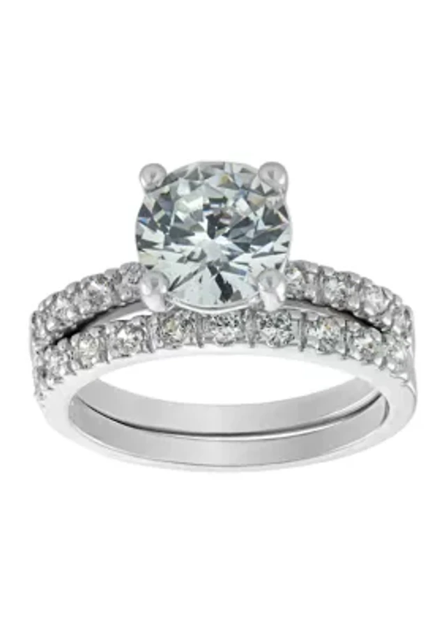 Plated Cubic Zirconia Vintage Inspired Pendant and 5mm Stud Earring Set