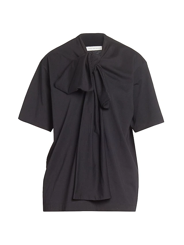 Curbin Cotton Tie-Neck Blouse