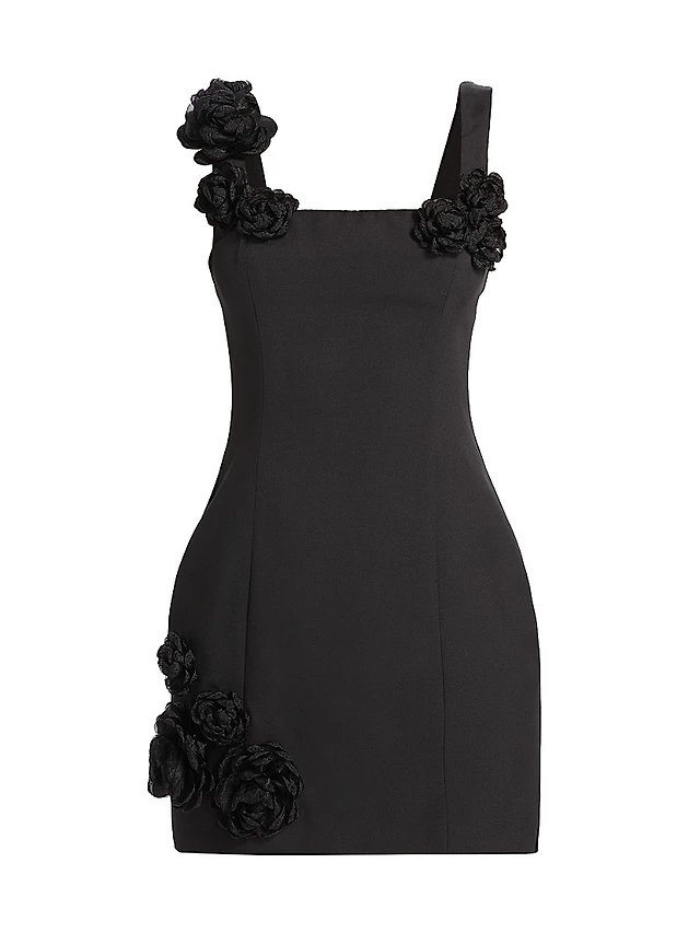 Asha Dress Flower Appliqué Sateen Midi-Dress