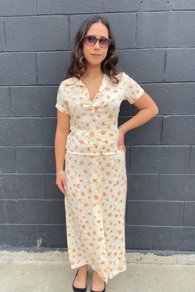 Vintage 1970's Peach Floral Skirt and Top Set Selected by FernMercantile
