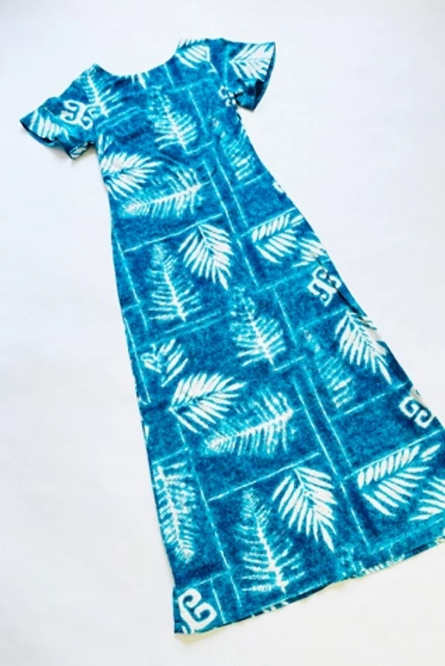 Vintage 1970's Hawaiian Barkcloth Palm Frond Maxi Dress Selected by FernMercantile
