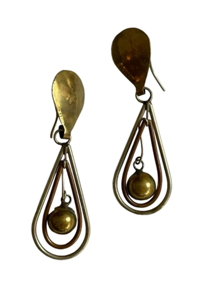 Vintage 1970's Modernist Mixed Metal Drop Earrings Selected by FernMercantile