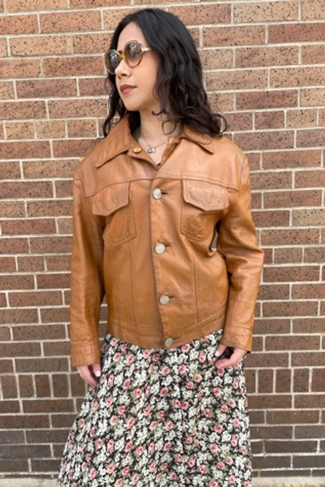Vintage Brown Leather Jacket with Quarter Buttons Selected by FernMercantile