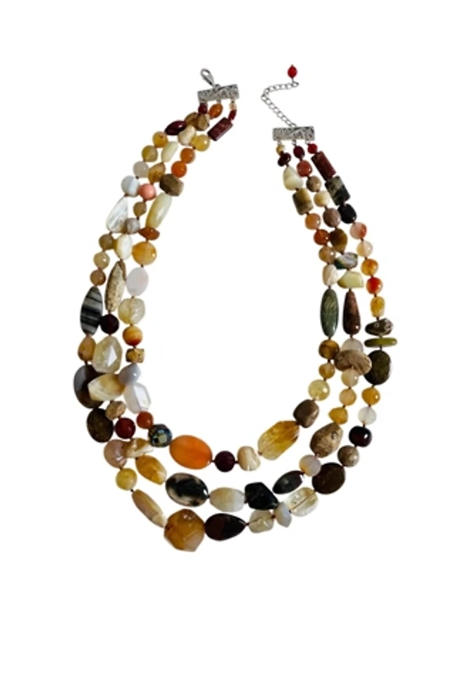 Vintage 1990's Natural Stone Triple Tier Necklace Selected by FernMercantile