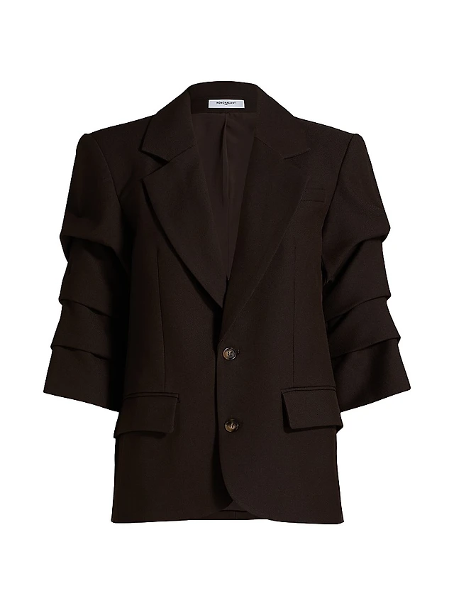 Roma Ruched-Sleeve Single-Breasted Blazer