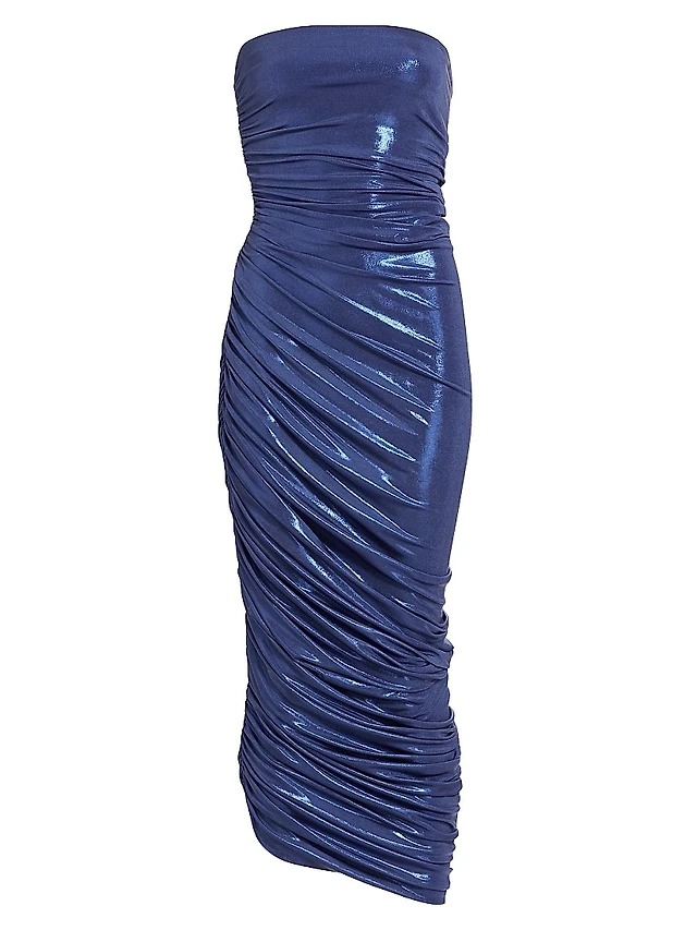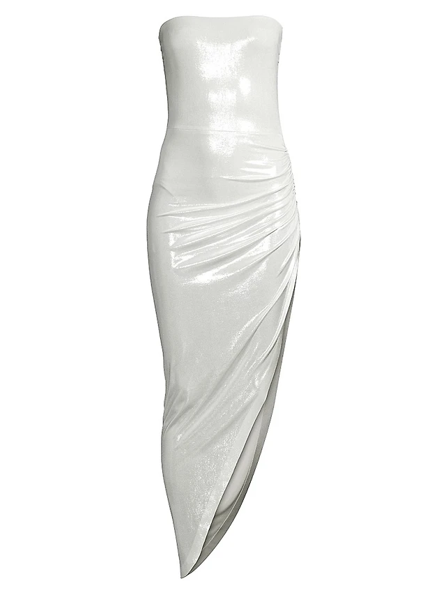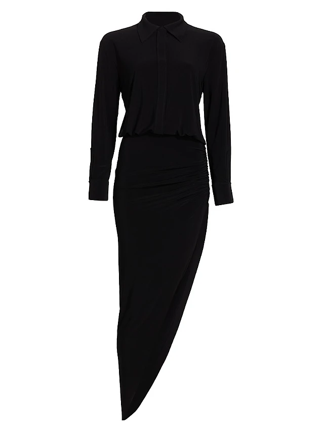 Long-Sleeve Turtleneck Side-Drape Midi Dress