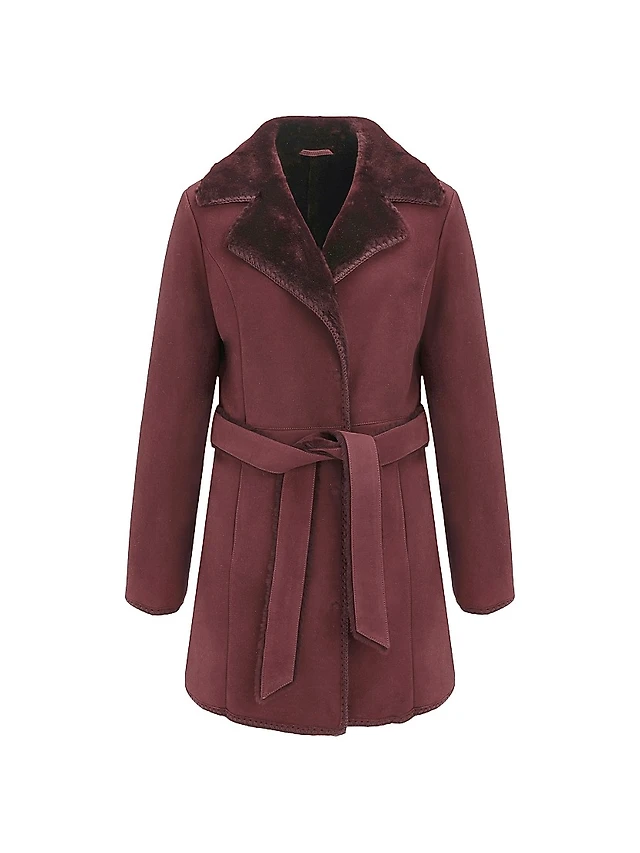 Reversible Loro Piana Wool Stroller with Detachable Select Shearling Lamb Collar, Belt
