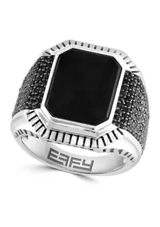 Men's Onyx and Black Spinel Ring in Sterling Silver