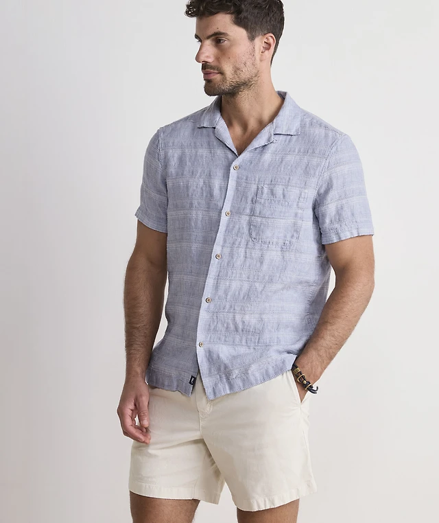 Havana Stripe Linen Short-Sleeve Cabana Shirt