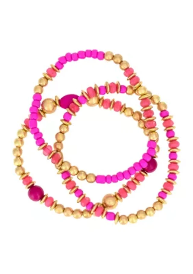 3 Row Multi Beaded Stretch Bracelet Set