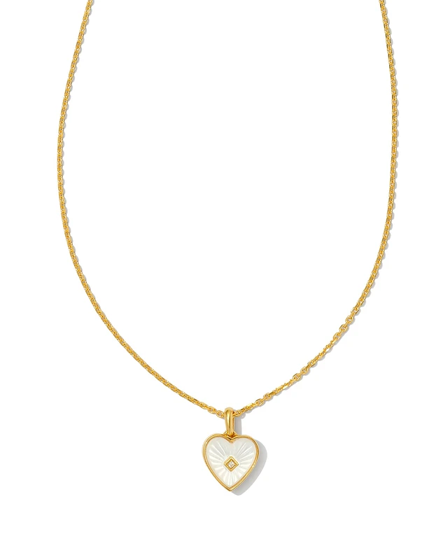 Adalynn 18k Gold Vermeil Heart Pendant Necklace in Ivory Mother-of-Pearl