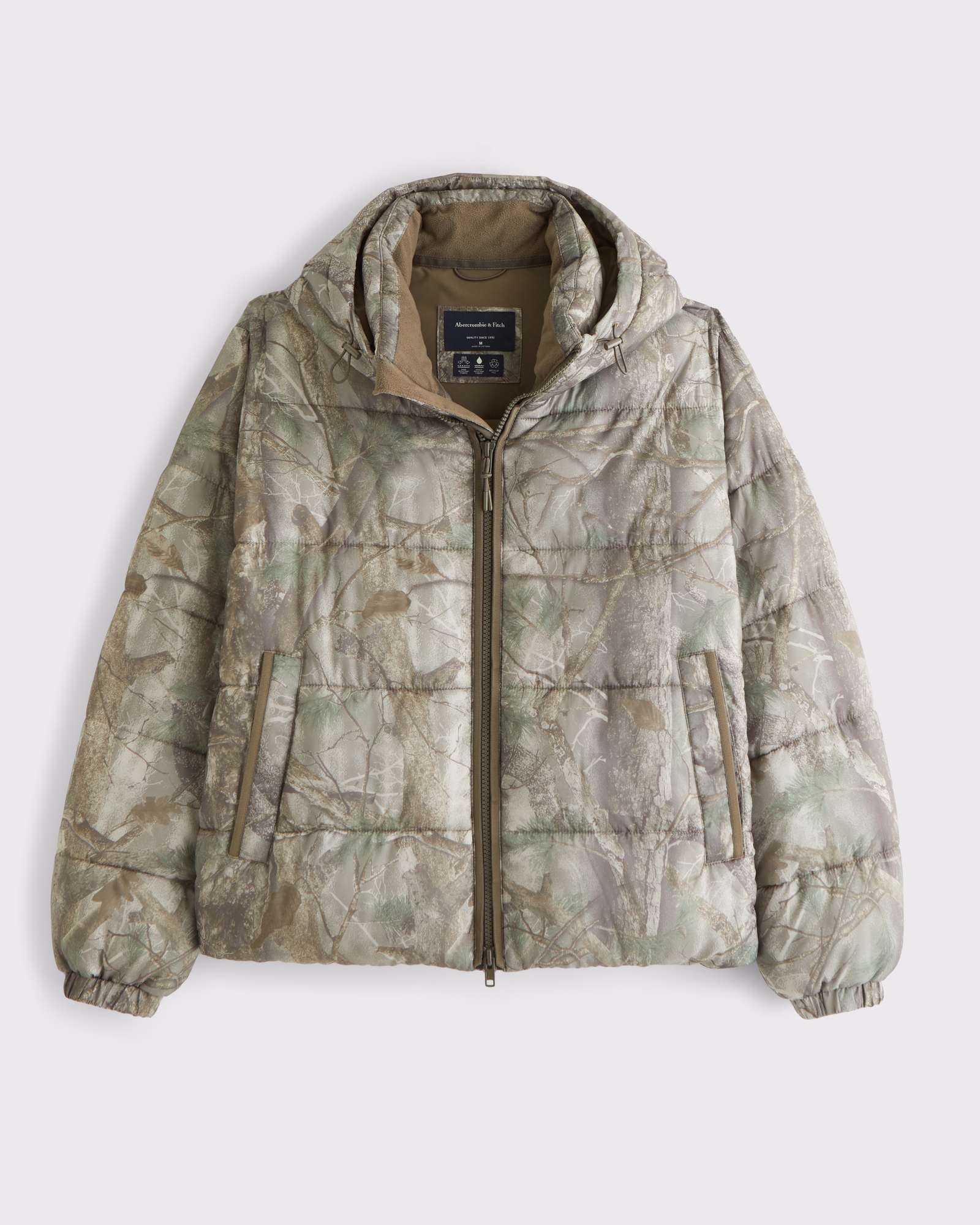 Our new heavyweight hooded puffer jacket in our wind- and water-resistant nylon fabric and relaxed-fit silhouette. Features recycled fill to protect against the elements, side zip pockets with interior chest pocket, zip-up front, channel quilting details and storm cuffs.