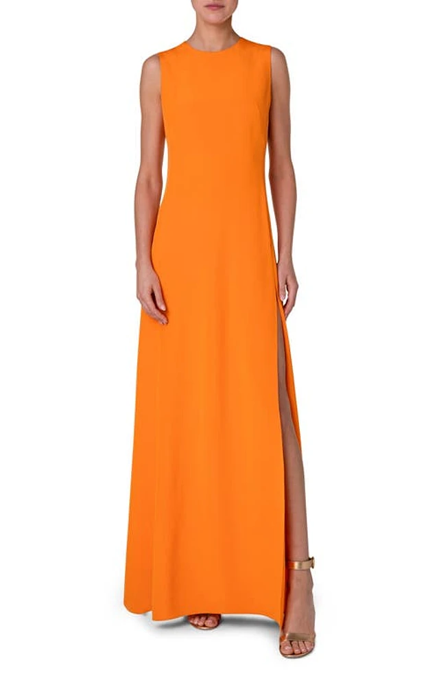 Akris Sleeveless Silk Crepe A-Line Gown in Pumpkin at Nordstrom, Size 4