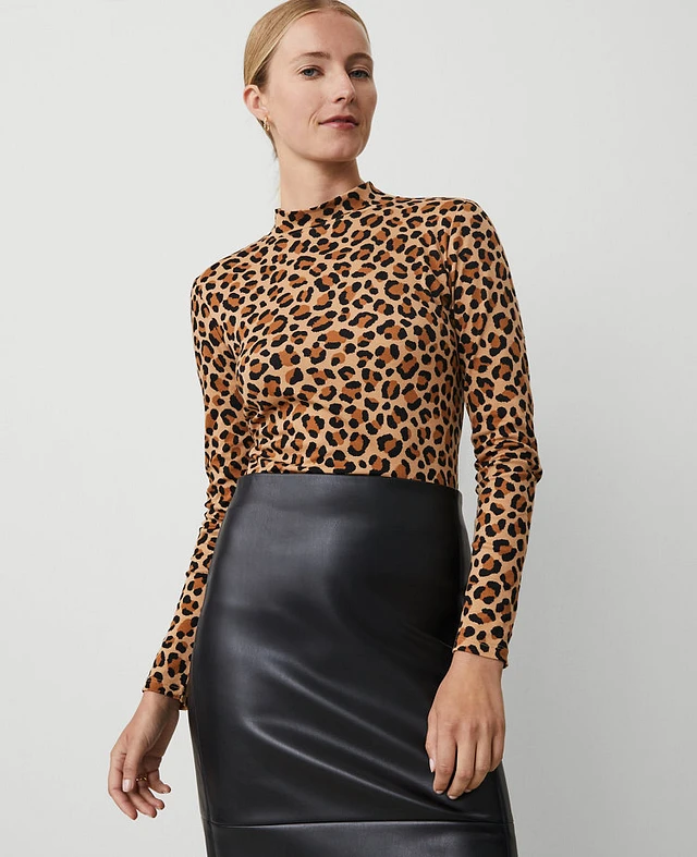Ann Taylor Animal Print Mock Neck Top Tan Women's