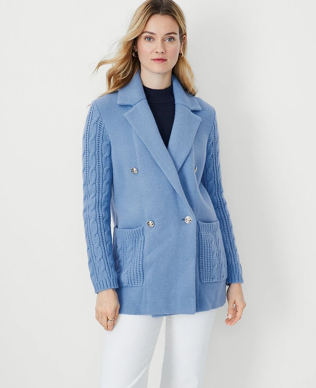 Ann Taylor Cable Double Breasted Coatigan Pure Azure Women's