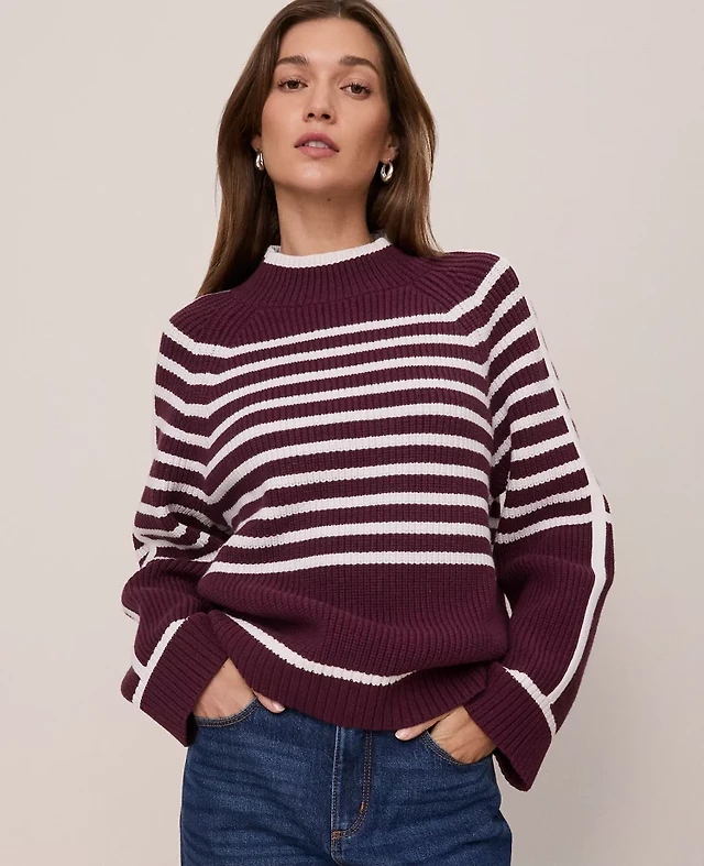 Ann Taylor Weekend Collection Striped Mock Neck Sweater Size XL Poised Plum Women's