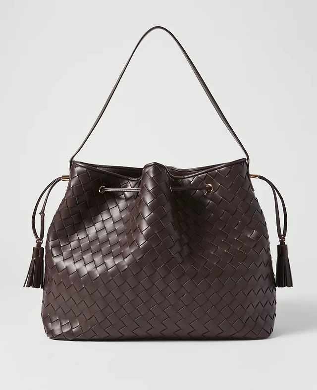 Ann Taylor Woven Drawstring Bucket Bag Dark Chocolate Women's