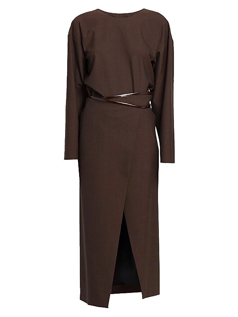 Philosophy di Lorenzo Serafini's long-sleeved midi-dress features a wrap-style belted waist. Side seam pockets and a center slit complete this design.