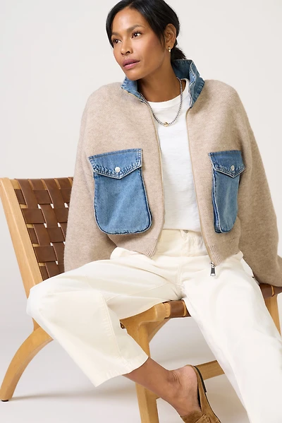 BLANKNYC Glow Up Denim & Knit Bomber Jacket