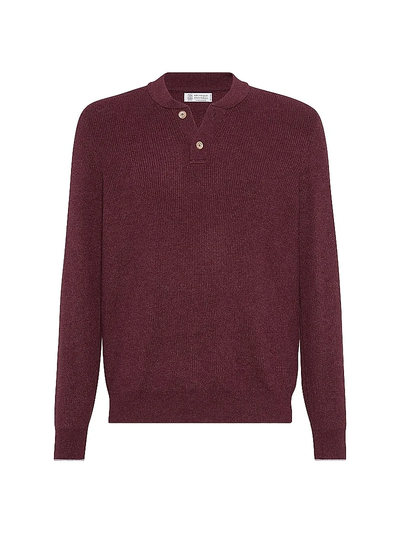 Cashmere English Rib Sweater with Henley Collar