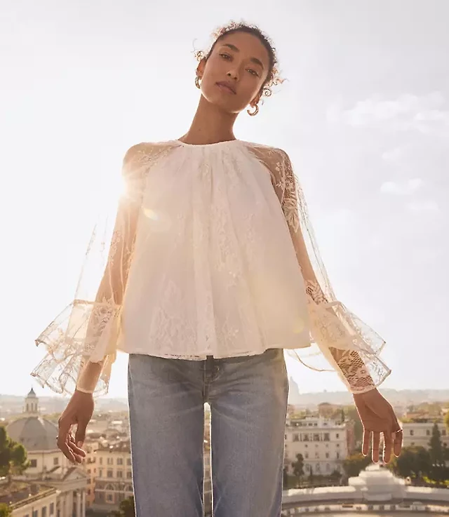 Piper Geometric Cotton-Blend Chantilly Lace Flare Pants
