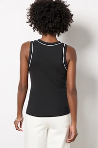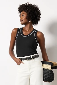 A stylish staple for dressing up or down, the Corey scoop neck tank by EVEREVE is crafted in soft rib knit fabric and features a fitted silhouette with white contrast piping.