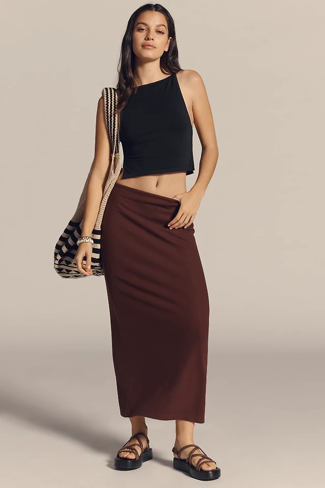 By Anthropologie Hardware Side-Slit Column Midi Skirt