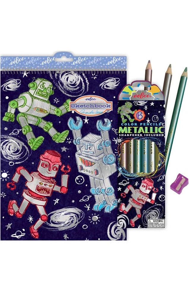 eeBoo Silver Robot Sketchbook Bundle at Nordstrom