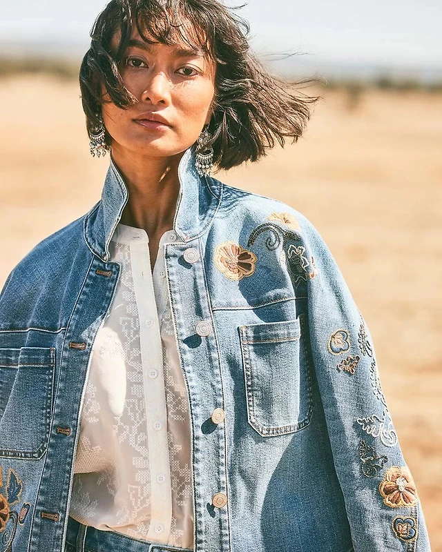 Embroidered Cropped Denim Jacket