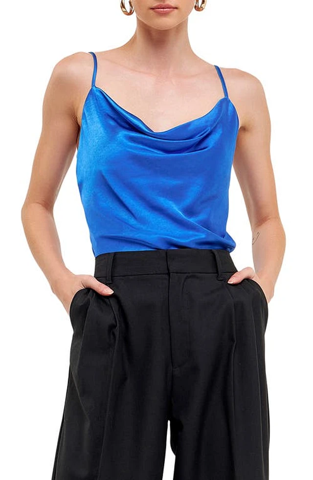 Endless Rose Cowl Neck Camisole Blue at Nordstrom,