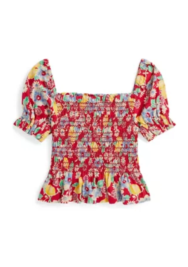 Girls 2-6x Floral Smocked Cotton Jersey Top