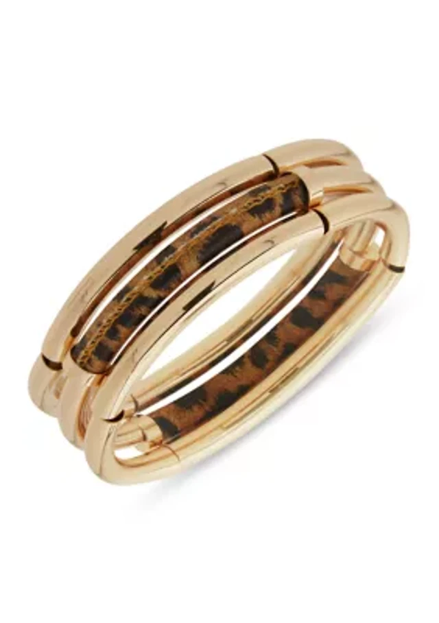 Gold Tone Leopard Print Stretch Bangle Bracelet Set