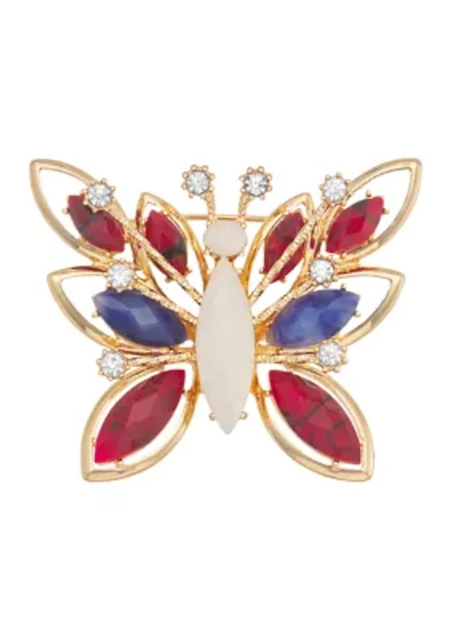 Gold Tone Red White Blue Butterfly Pin