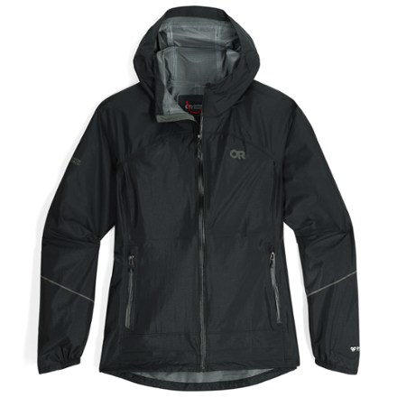 Lightweight, breathable and packable, the women's Outdoor Research Helium rain jacket offers durable flash storm protection, thanks to fully seam-taped Pertex® Shield Diamond Fuse 2.5-layer material.