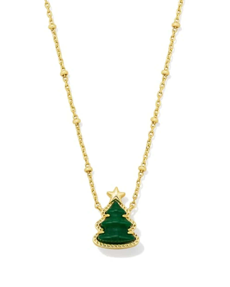 Holiday Tree Gold Short Pendant Necklace