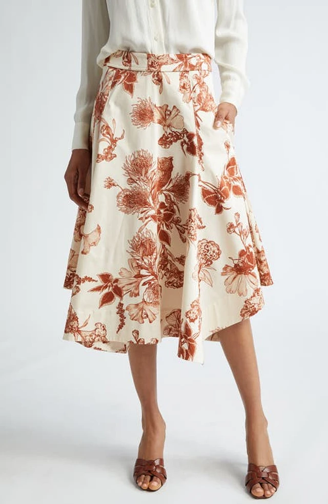 Jason Wu Collection Botanical Print Handkerchief Hem Midi Skirt Calico /Rust at Nordstrom,