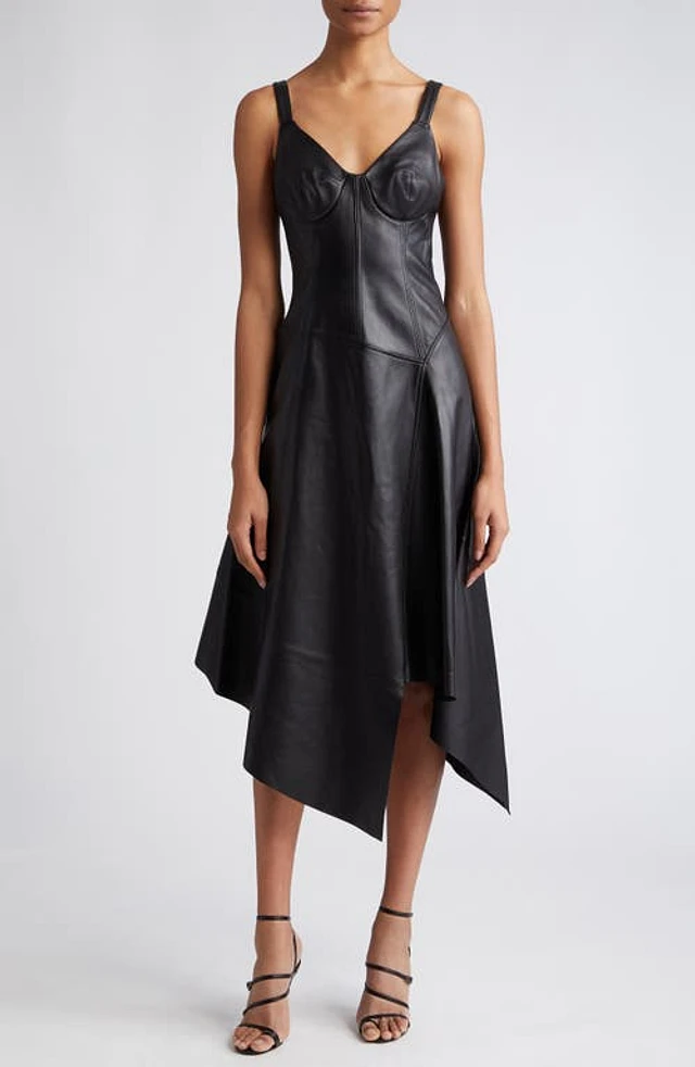 Jason Wu Collection Corset Bodice Leather Dress Black at Nordstrom,