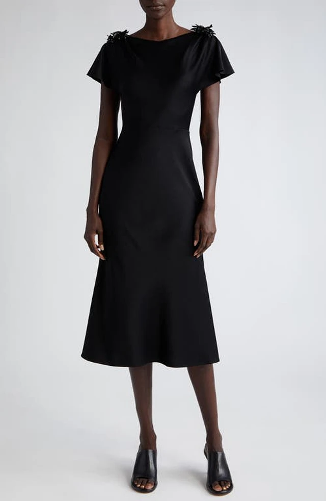 Jason Wu Collection Embellished Flutter Sleeve Crepe Jersey Midi Dress Black at Nordstrom,