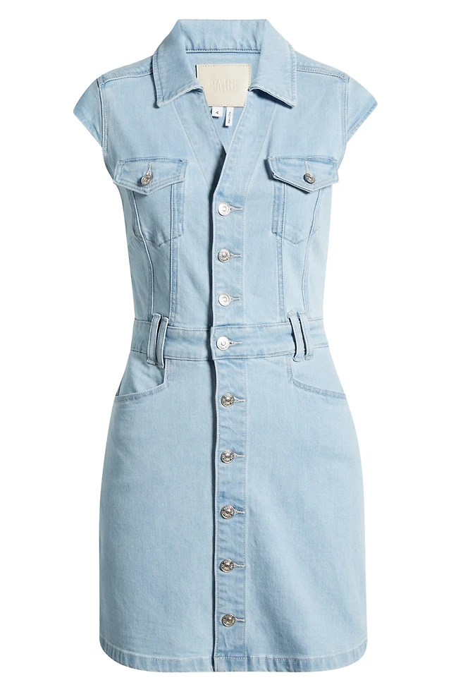 The Sleeveless Front-Snap Denim Mini Shirtdress