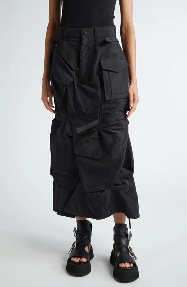 Junya Watanabe Matte Satin Cargo Midi Skirt Black at Nordstrom,