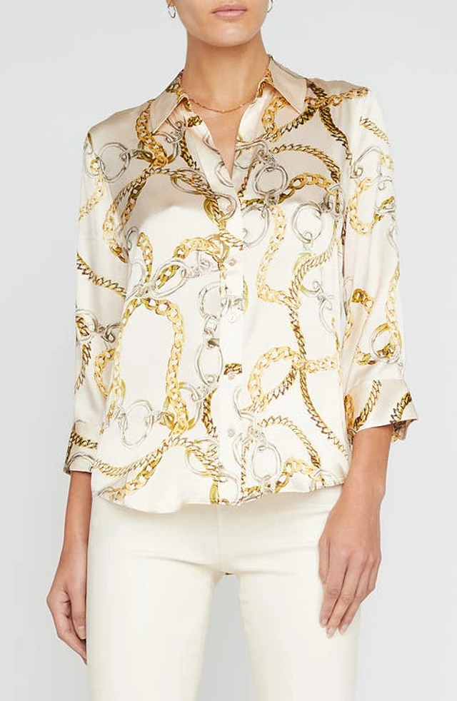 L'AGENCE Dani Chain Print Silk Button-Up Shirt in Ecru Multi Oversized Chain at Nordstrom, Size Xx-Small