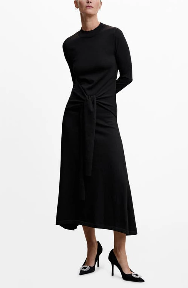 MANGO Bow Front Long Sleeve Sweater Dress in Black at Nordstrom, Size 4