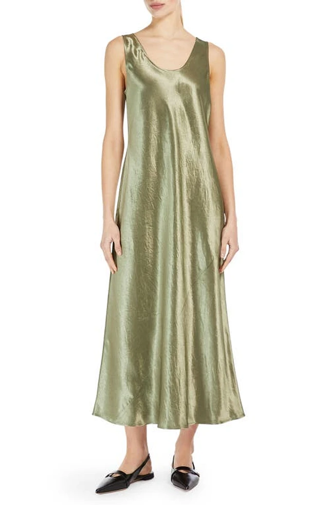 Max Mara Leisure Talete Sleeveless Crinkle Satin Dress Pastel Green at Nordstrom,