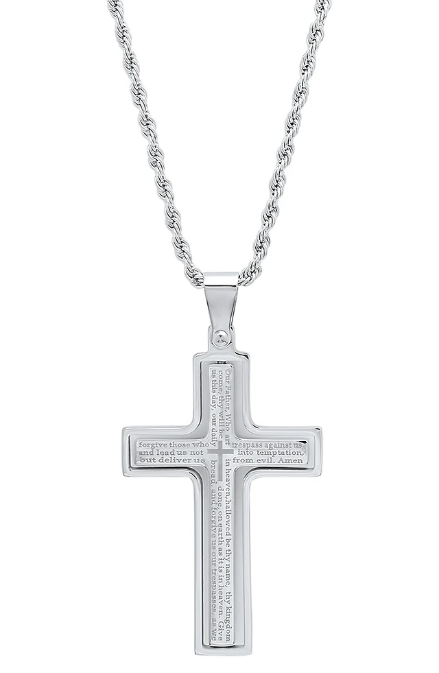 Men's Lord's Prayer Engraved Cross Pendant Necklace