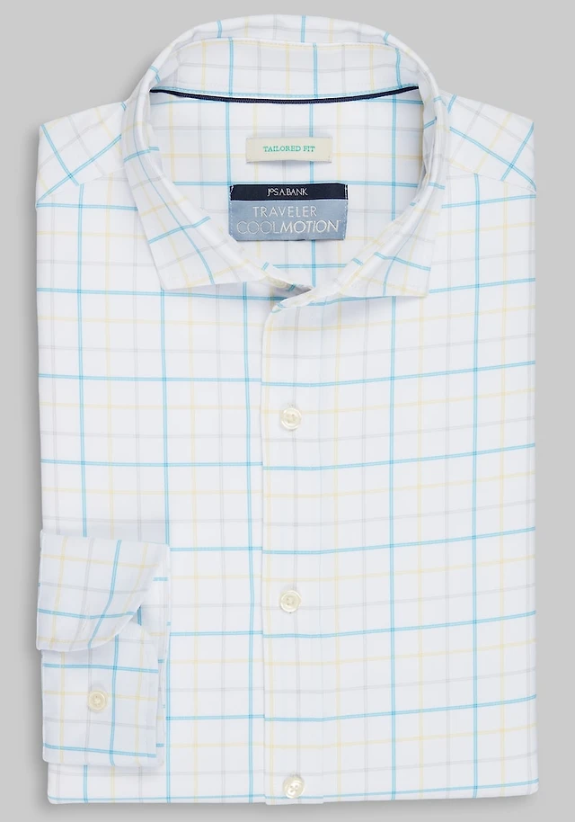 Men's Traveler® Collection Tailored Fit Large Plaid 4-Way Stretch Casual Shirt at Jos. A. Bank, Yellow