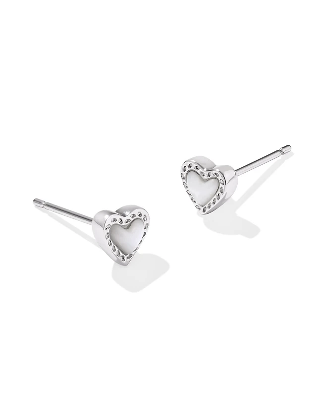 Mini Ari Heart Silver Stud Earrings in Ivory Mother-of-Pearl