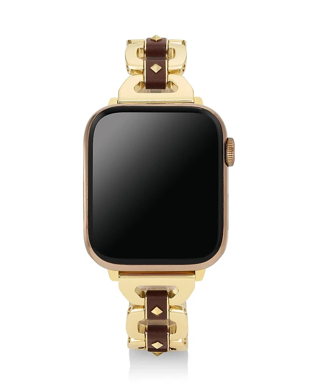 Nora Gold Tone Stainless Steel Leather Wrapped Watch Band