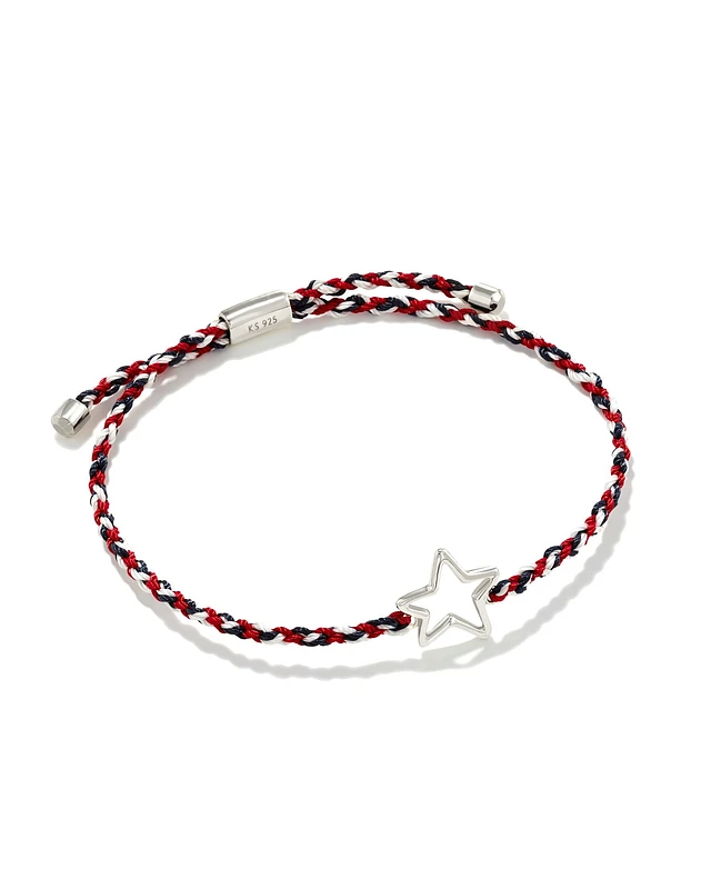 Open Star Sterling Silver Corded Bracelet in Red, White, Blue Mix